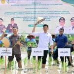 LAMSEL, Sragi — Upaya memperkuat ketahanan pangan di wilayah pesisir Lampung Selatan kembali mendapatkan dorongan besar melalui kolaborasi antara Pemerintah Kabupaten (Pemkab) Lampung Selatan dan Kejaksaan Tinggi (Kejati) Lampung. Pada Rabu, 10 Desember 2025, sinergi tersebut diwujudkan dalam penanaman padi biosalin di Desa Bandar Agung, Kecamatan Sragi, sekaligus peresmian berbagai program pemberdayaan ekonomi masyarakat.